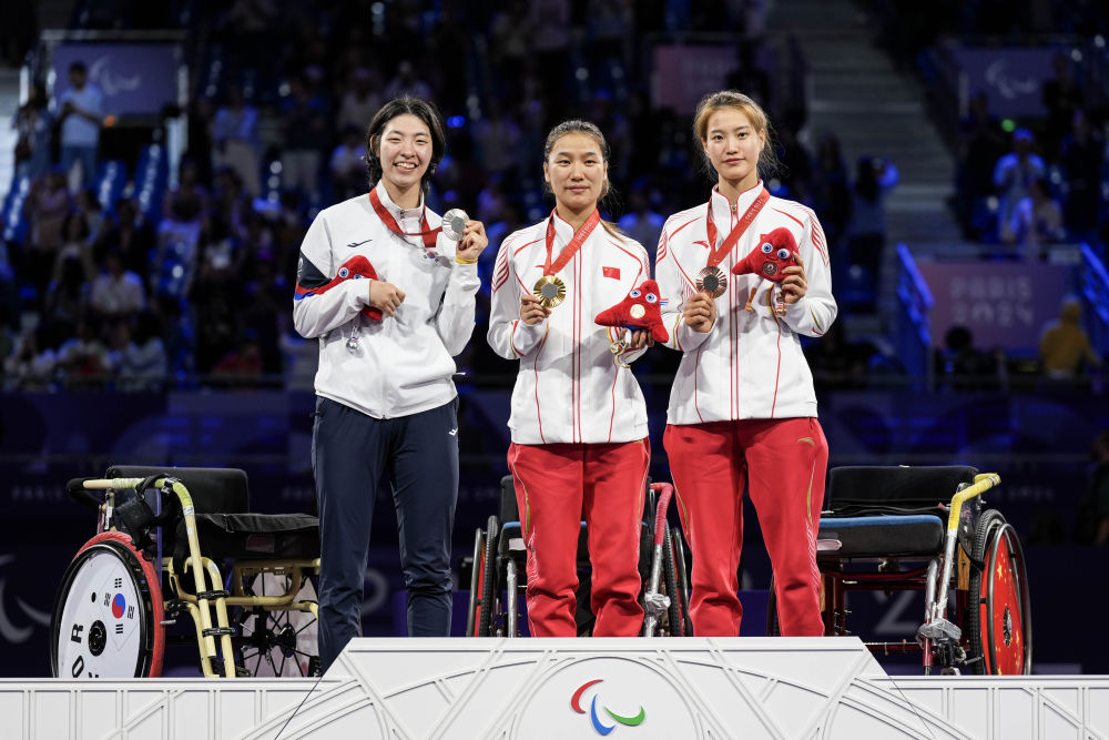 轮椅击剑赛场迎来男、女重剑个人项目的对决。在男子重剑个人A级比赛中,孙刚凭借稳健发挥,以15:12击败英国选手皮尔斯·吉利威尔,赢得金牌。陈远东在女子重剑个人A级比赛中技压群芳,以15:6轻取韩国选手权孝敬夺冠。