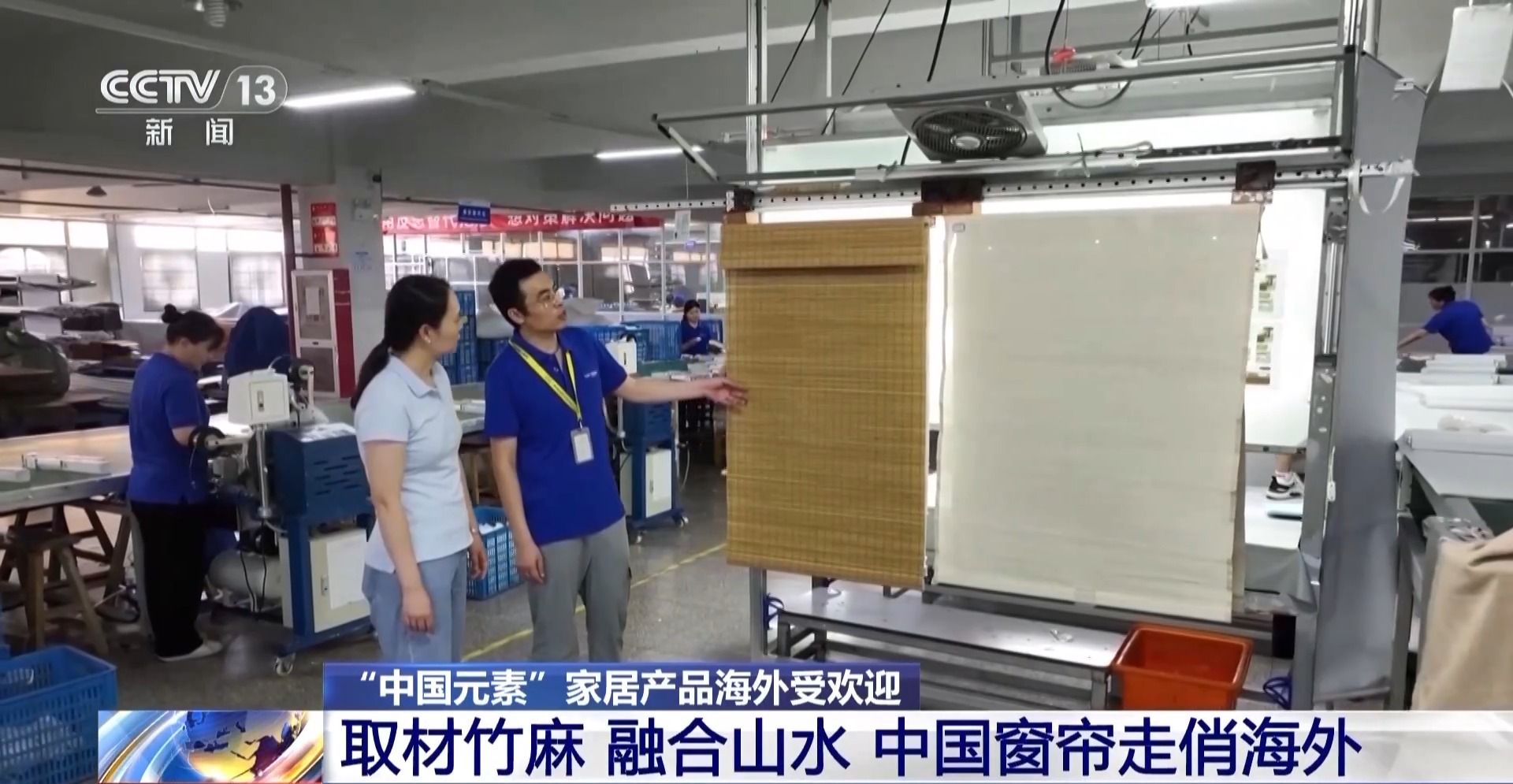 宁波佳圆窗饰有限公司总经理 汪佳圆:今年上半年的销量同比增长40%左右,出口的国家为欧美、中东等。其中山水画、祥云等具有中国国风元素的一些窗帘都走俏海外市场,国风成为一种创新性的融合。结合各种功能和传统设计美学,赋予了窗帘更多的文化价值。
