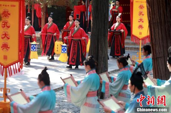 9月28日,甲辰年公祭孔子大典在山东曲阜孔庙举行,海内外各界嘉宾汇聚于此,共同纪念孔子诞辰2575年。图为青年学生在孔庙齐声诵读儒学经典。