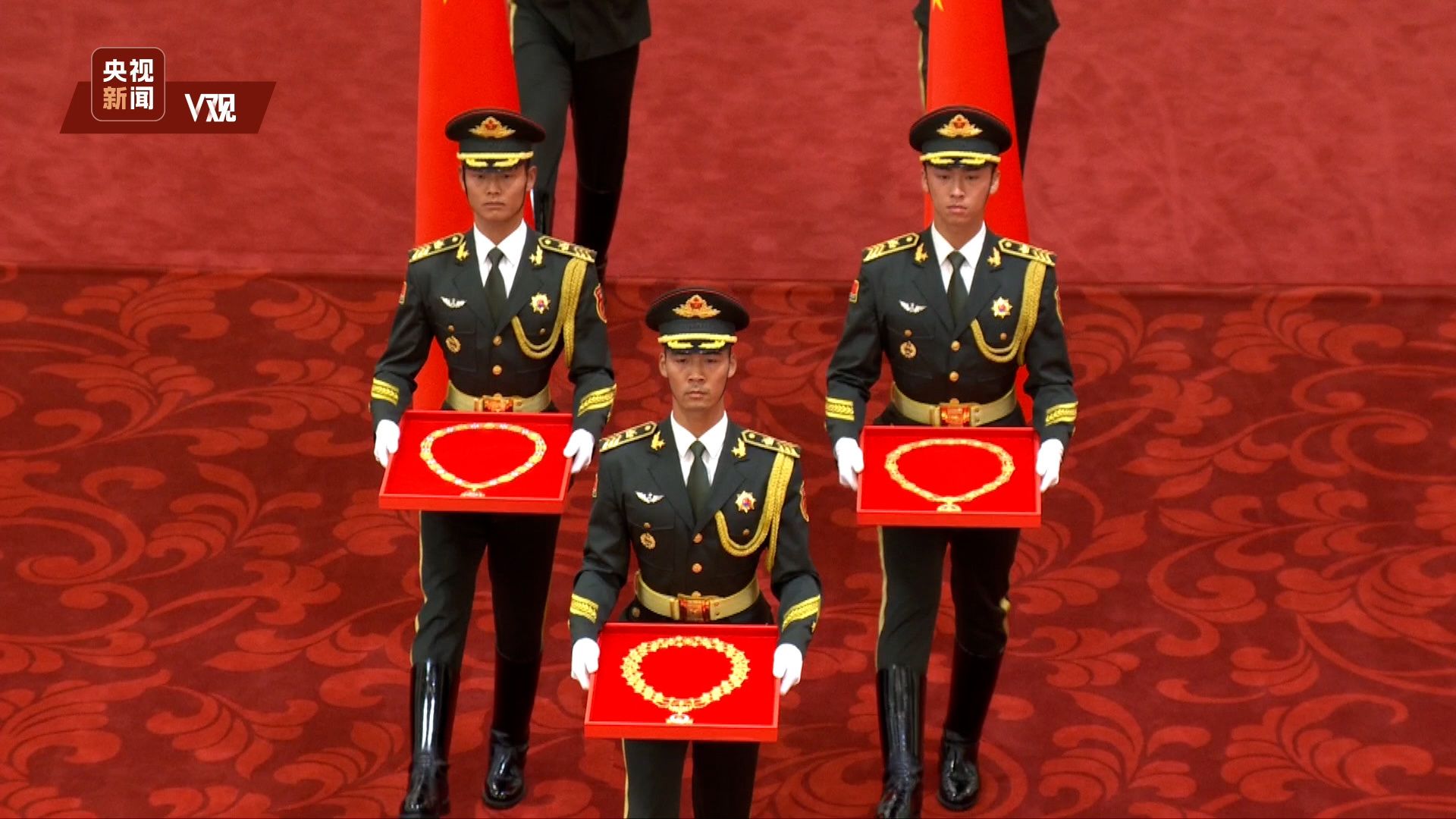 9月29日上午10时,中华人民共和国国家勋章和国家荣誉称号颁授仪式在人民大会堂隆重举行。中共中央总书记、国家主席、中央军委主席习近平向国家勋章和国家荣誉称号获得者分别授予“共和国勋章”“友谊勋章”和国家荣誉称号奖章并发表重要讲话。