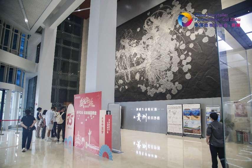 9月28日,“2024中国故事共创会”采访团一行走进了贵州地质博物馆。在序厅,几乎占据了一面墙的巨幅海百合化石吸引了外籍自媒体人的视线。一朵朵直径达半米的硕大“花朵”盛开,与它们的“茎杆”一起构成繁花似锦的画卷,而“花朵”上清晰的鳞片状结构,又展现了海百合的动物特征。
