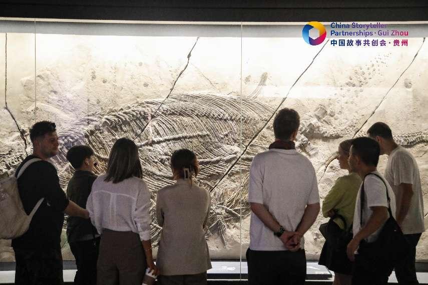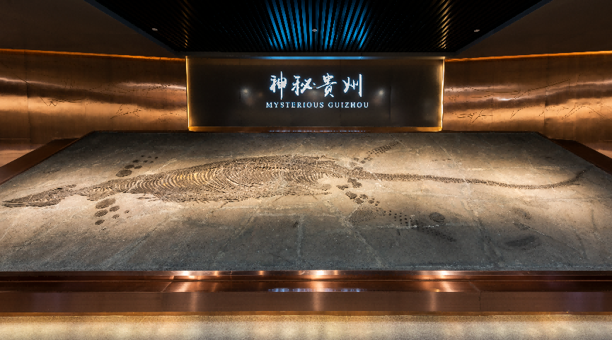 据介绍,远在2.35亿年前的地质历史时期里,贵州所处的众多区域是一片生存着众多海生爬行动物的汪洋大海。地质的变迁将它们留存下来,成为今天能够看到的古生物化石。从鱼龙、鳍龙、楯齿龙等海生爬行动物,到海百合和菊石、双壳、牙形石、鹦鹉螺、腕足及古植物化石,数量巨大、种类繁多、保存精美,为全球同期地层所罕见,因此“龙跃黔海”的说法非常贴切。