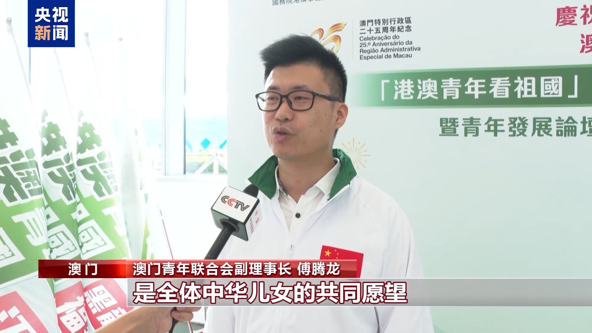 澳门青年联合会副理事长 傅腾龙:祖国的繁荣昌盛是全体中华儿女的共同愿望,在祖国的关怀下,澳门回归25年来经济社会民生都有了飞跃式的发展。澳门青年的发展舞台也越来越大,包括像(粤港澳)大湾区、 (横琴粤澳)深合区这样历史性的机遇。