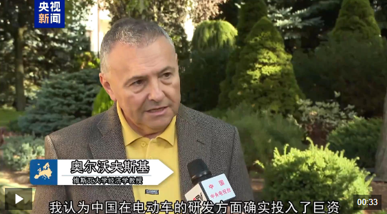 波兰维斯瓦大学经济学教授 维陶塔斯·奥尔沃夫斯基:我认为中国在电动车的研发方面确实投入了巨资,不是像有些欧盟生产商说的那样中国电动车靠补贴,而是中国真正的投资为电动车带来了竞争优势。如果像中国这样的大国出口迅猛增长,欧洲的生产商会对此感到担心,他们会试图以某种方式让欧盟委员会采取保护措施。