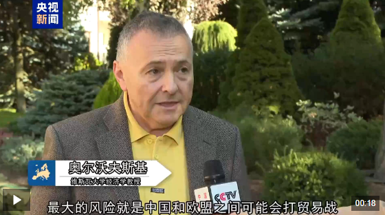 维斯瓦大学经济学教授 维陶塔斯·奥尔沃夫斯基:最大的风险就是中国和欧盟之间可能会打贸易战,就像我们看到的欧盟向中国电动汽车加税,中国准备向法国的白兰地加税,这样会加速双方的贸易战。