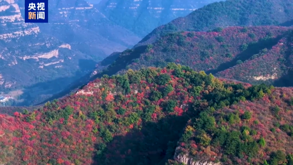 晚秋时节,山西省长治市境内的太行山仿佛被大自然打翻了调色盘,红、黄、橙、绿……各种色彩交织在一起,绘出了五彩斑斓的秋日画卷。跟随镜头,漫游太行山区,共赴这一场盛大的红叶盛宴。