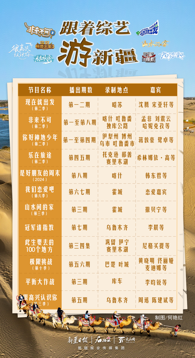 经粗略统计,今年3月至9月,从《极限挑战》《此生要去的100个地方》,到《你好种地少年》《非来不可》,短短半年左右的时间,先后有超过10个综艺节目在新疆录制,叶城、库车、吐鲁番、博乐、伊宁、霍城……足迹遍布天山南北。