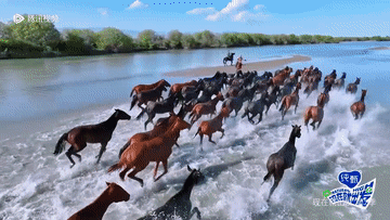 《现在就出发》第二季第一期,在新疆昭苏,天马浴河表扬让嘉宾惊叹不已。视频截图