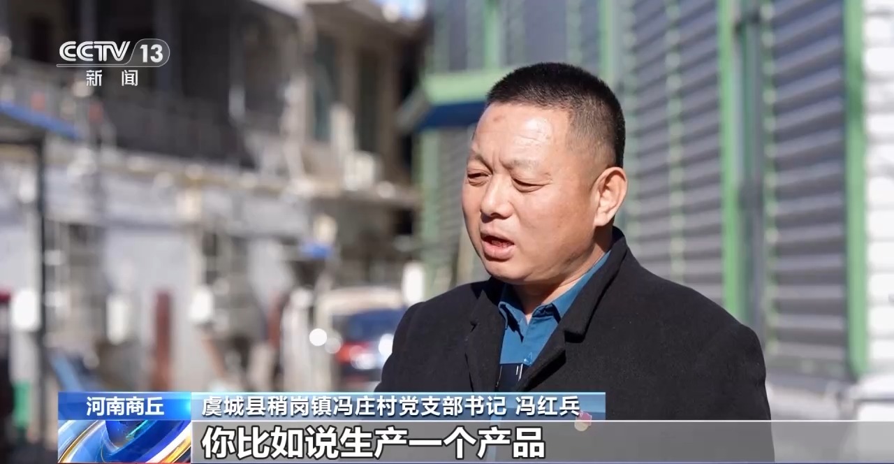 河南商丘虞城县稍岗镇冯庄村党支部书记 冯红兵:我们村里边,比如说生产一个产品,缺少什么配件了,就有人会上这个机器生产。这么多年,我们一步一步从销售,到从外面发现商机,进来模具、机器、材料,引进技术,一步一步干到了现在了。