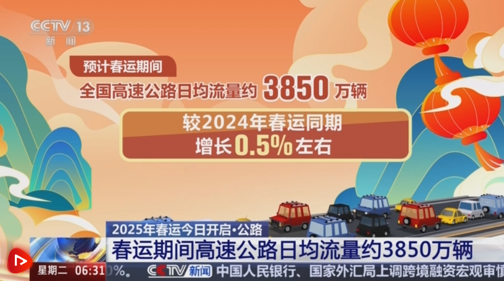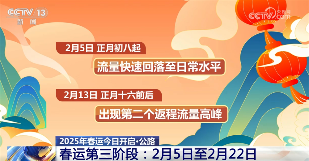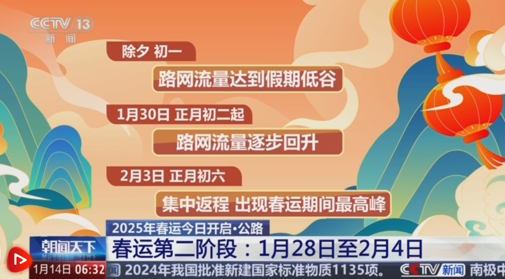 《2025年春运期间全国公路网运行研判》指出,春运期间,全国路网运行变化分为三个阶段,总体呈现“前期后期波段起伏,春节期间前低后高”的特征。