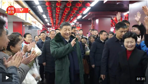此后,从昆明新春购物博览会,到贵阳的合力惠民生鲜超市,从山西平遥古城南大街,到北京新发地农产品批发市场、天津古文化街,总书记多次通过实地考察、视频连线等形式关注节日期间市场供应情况。