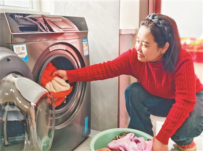 赵海的妻子安娟娟在使用智能洗衣机。段海 摄