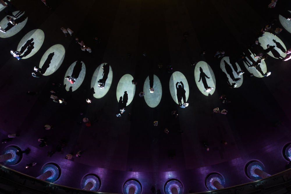 2022年11月20日,哈尔滨音乐厅为世界儿童日亮灯。