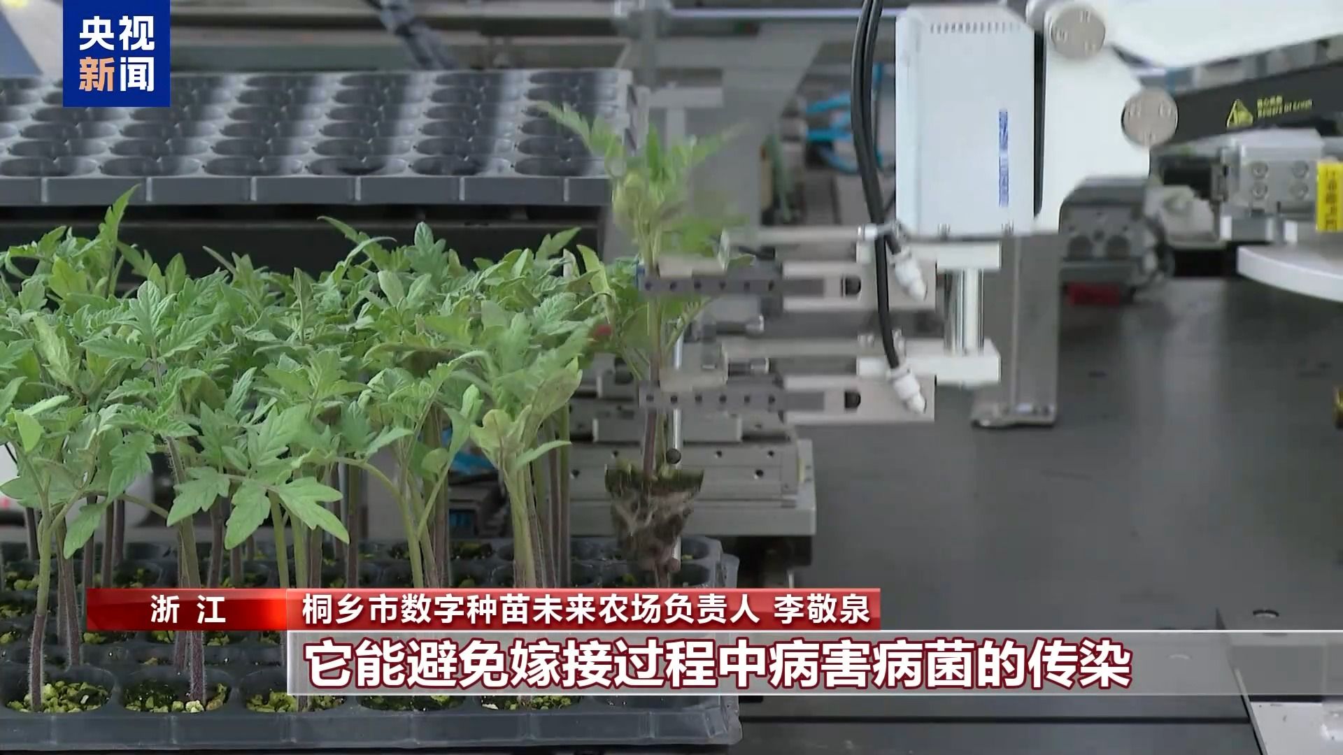 桐乡市数字种苗未来农场负责人 李敬泉:这种嫁接机器人能避免嫁接过程中,病害病菌的传染,提高整个种苗的质量。
