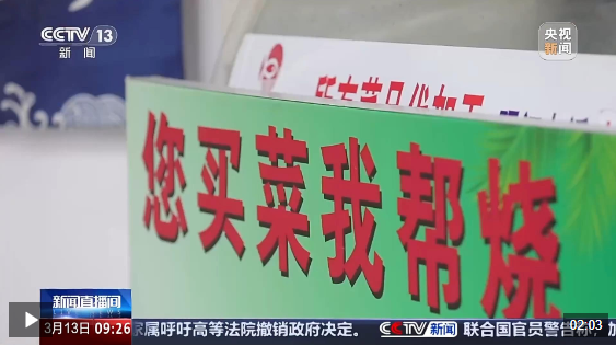 总台记者 吴琼:“您买菜我帮烧” 在上海浦东新区的永泰路菜市场,这里推出了代炒菜的服务,我们看到不到饭点, 这里的用餐区已经坐满了等待炒菜的顾客,同时还有很多人是从旁边的菜市场直接买菜带过来的,我们一起去体验一下。