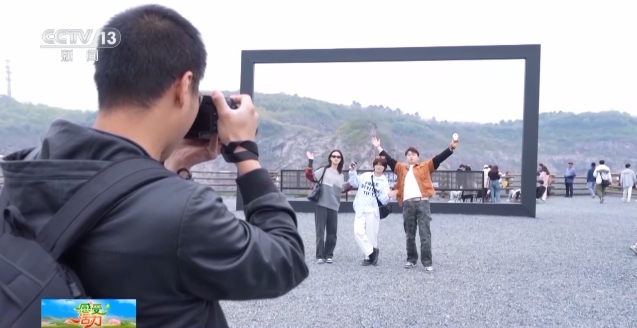 三年前,一个“90后”创业团队来到这里,在当地政府支持下,创业团队以天然形成的湛蓝色爱心湖为核心,保留了矿坑裸露的崖壁等原始风貌,将矿区原有的房屋改造成咖啡馆,形成了一个将工业废墟感和秀丽自然风光完美融合的景区。