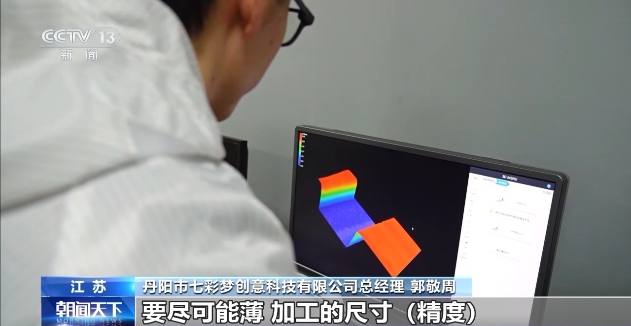 丹阳市七彩梦创意科技有限公司总经理 郭敬周:为了和波导片配合一致,所有的屈光片必须前表面非常平整,要尽可能薄,加工的尺寸精度完全超过现有市面上的光学眼镜的加工尺寸精度。