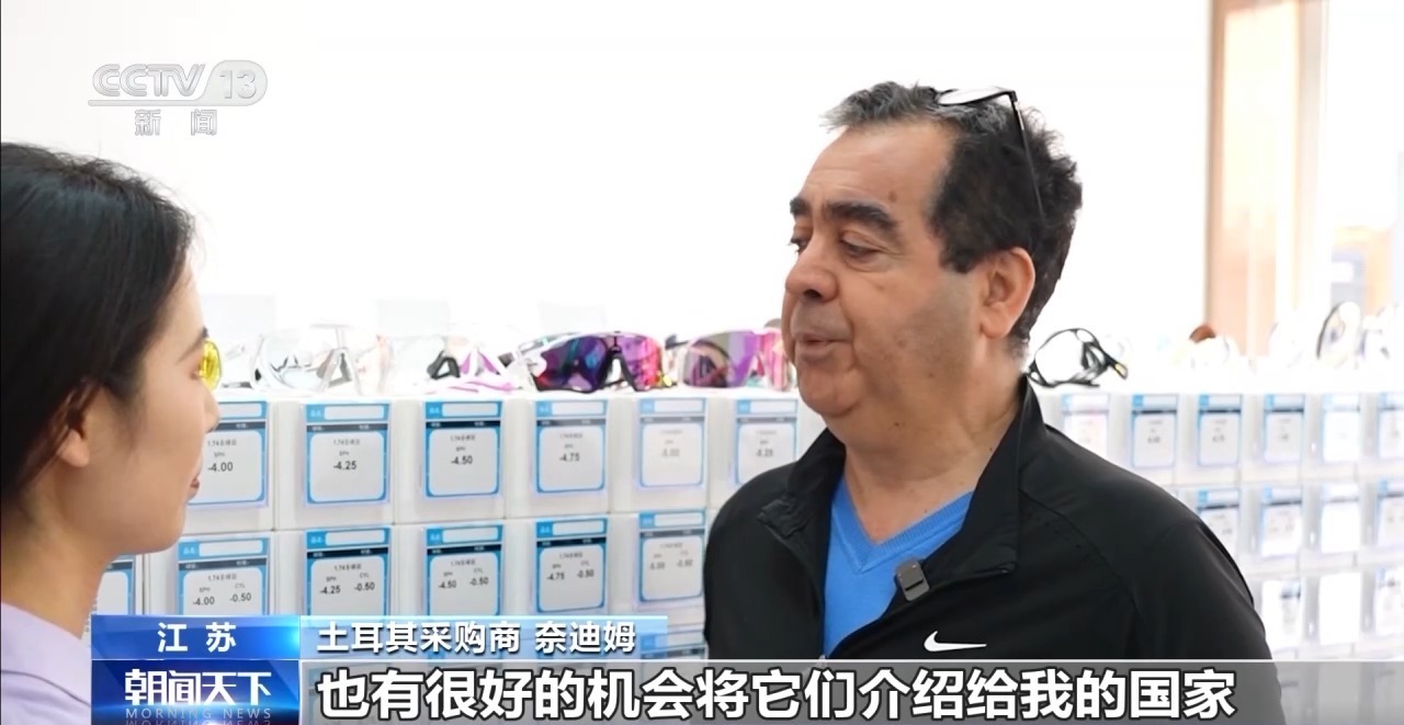 就在采访中,记者遇到了一位来自土耳其的采购商,他告诉记者,自己是伊斯坦布尔一家大型眼镜公司的供应链负责人,因为觉得丹阳眼镜物美价廉,他几乎每周都会过来提货。做了50年眼镜生意的他,每次来丹阳,都会有些新收获。这次,他就被新款运动眼镜吸引了。