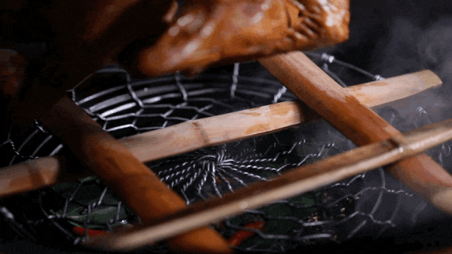 烟起熏烤鹅肉
