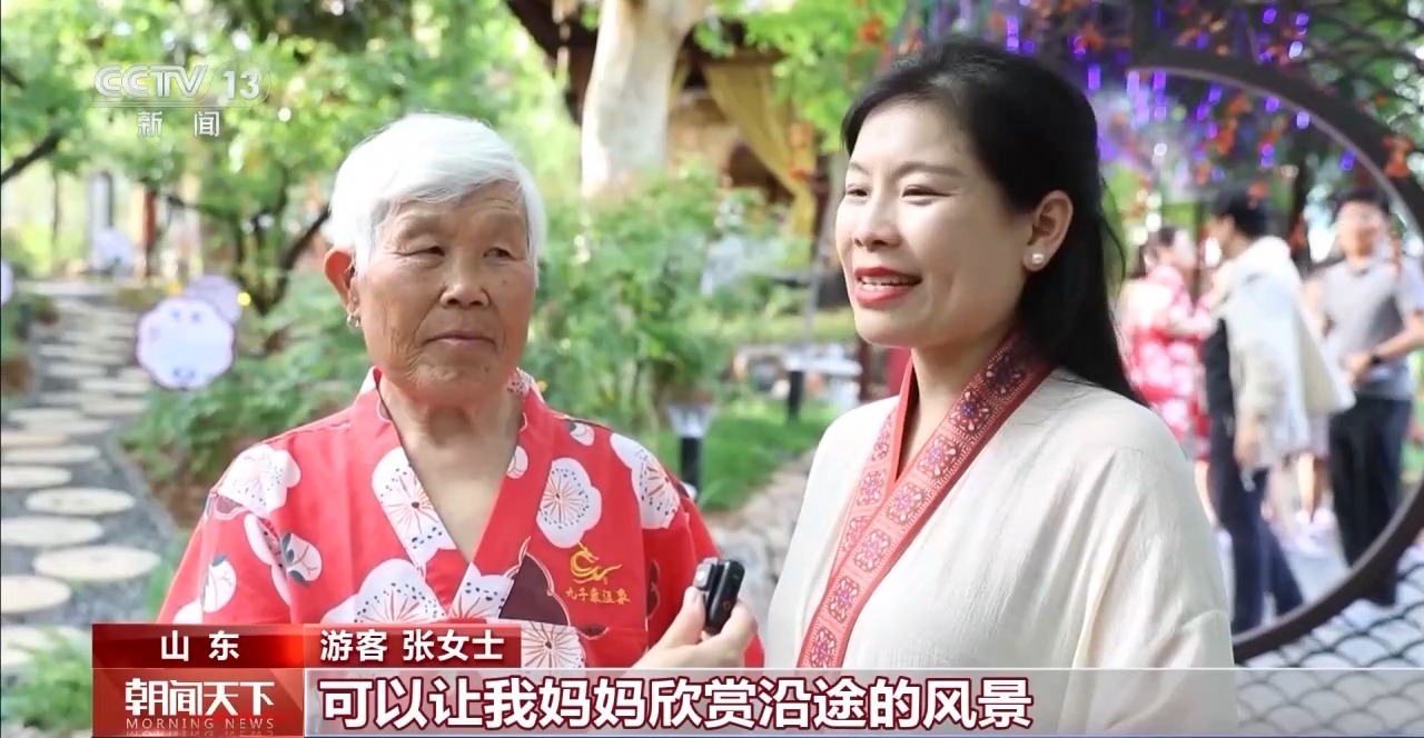 游客 张女士:这种慢节奏的旅行,可以让我妈妈欣赏沿途的风景,来到这里享受一下康养的氛围,同时泡泡温泉,品品美食,可以穿上汉服,实现身心愉悦的“穿越”。