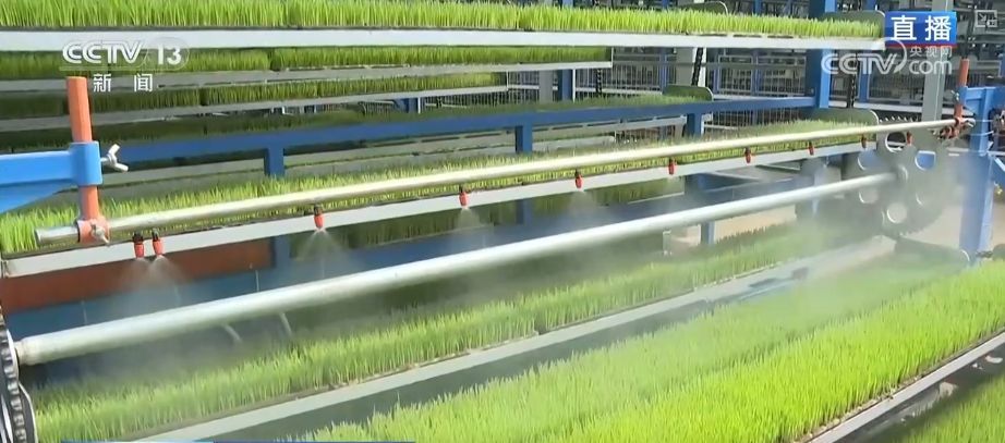 距离这片农田不到1公里,还有为大田育秧的育秧工厂。在智能化的控制下,秧苗生长期所需的光照、温度、湿度都能实现精准调控,让种子在最适宜的环境中成长为茁壮的秧苗。
