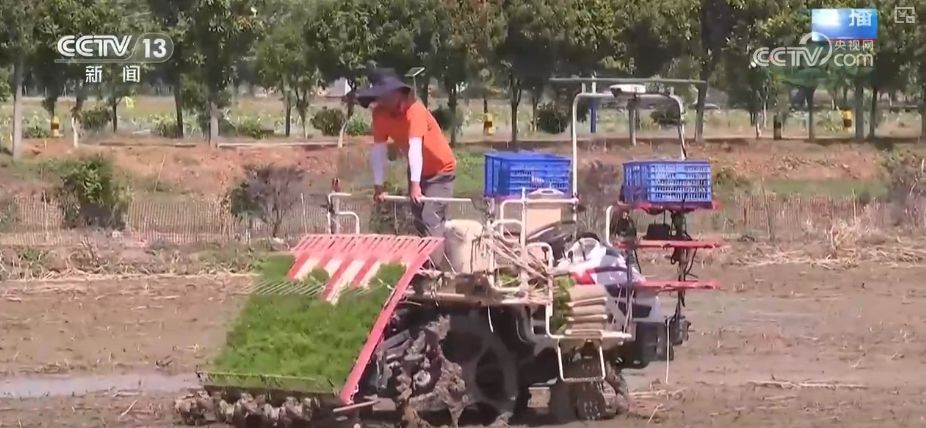 这里种植的是一种两收的再生稻,这里进行了最后一片再生稻的插秧工作。无人驾驶的插秧机正在作业,只需要农技人员放置秧盘,秧苗就能够整齐地种好。原来,这片田如果用传统人工插秧,需要9个人干一天才能干完。现在,无人插秧机只需要1小时就能搞定,而且秧苗之间距离非常标准,这也方便了小鸭子们的自由奔跑。