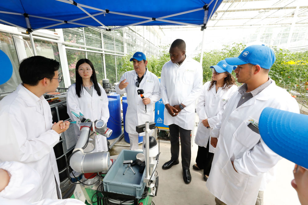 2024年5月22日,“中国—联合国粮农组织南南合作拉丁美洲和加勒比地区农村生计改善和粮食体系转型能力建设活动”学员赴江苏省农业科学院开展交流。新华社发(江苏省农业科学院供图)