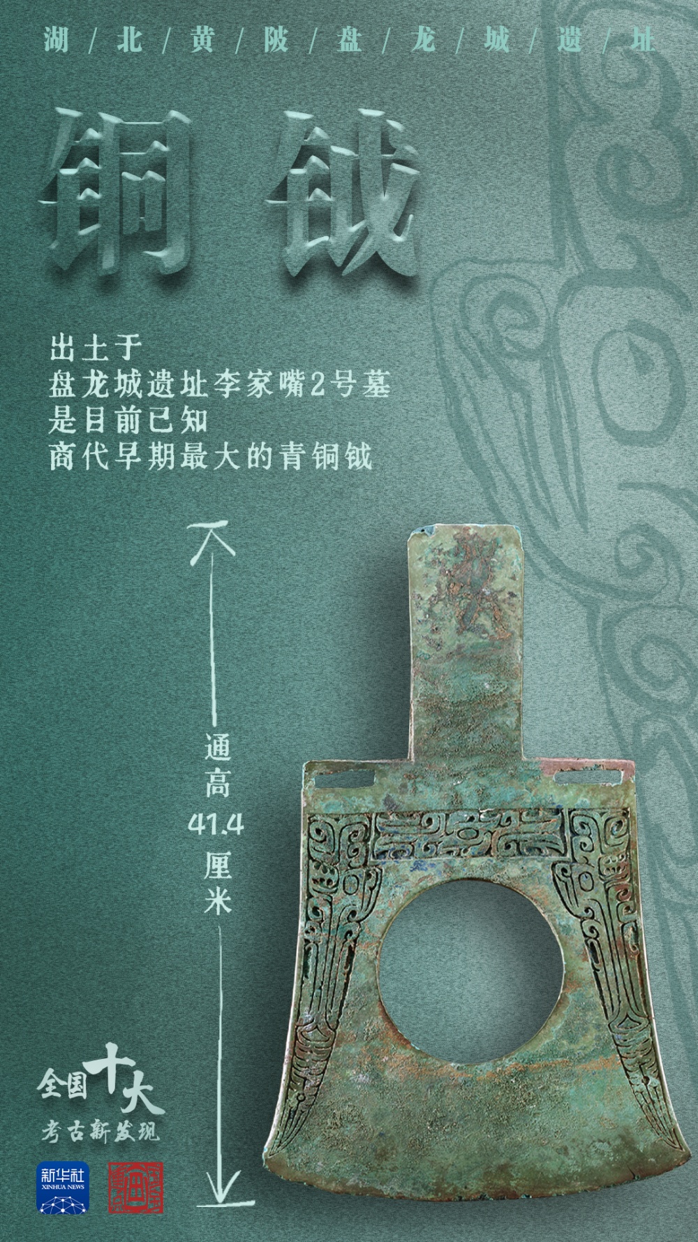 出土于盘龙城遗址李家嘴2号墓的铜钺