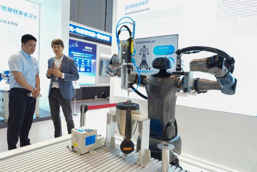 5月22日,客商在“数智中东欧”展区了解具身智能机器人系统。新华社记者 黄宗治 摄