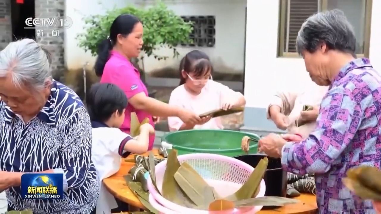 端午时节,粽叶飘香。在广西玉林容县,大家围坐在庭院中,包起长条粽、牛角粽等特色粽子;在上海、四川成都,中外游客走进公园,现场制作、品尝端午香粽。