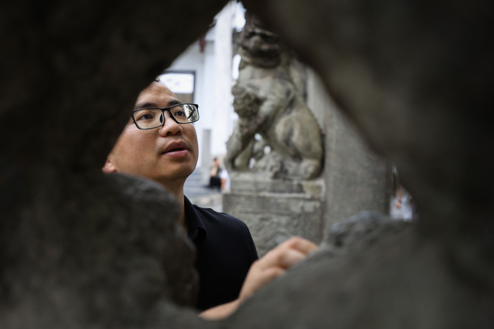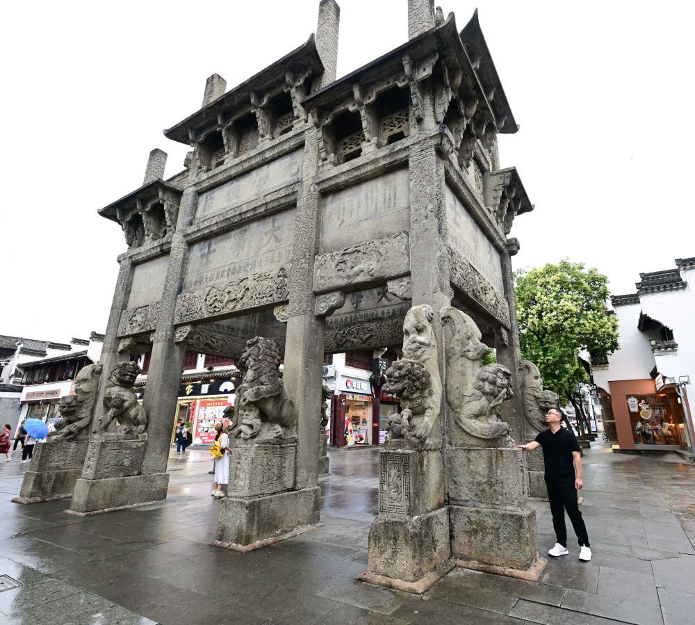 6月19日,周虎在位于歙县的全国重点文物保护单位许国石坊巡查。