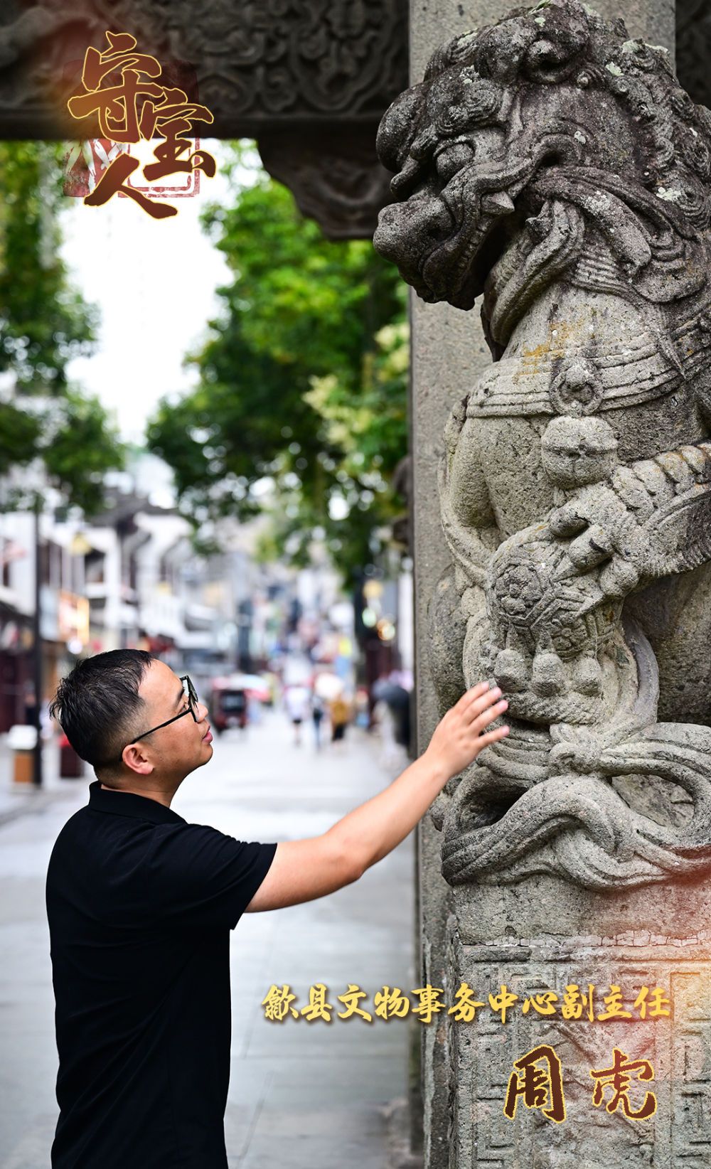 今年33岁的周虎毕业于安徽大学考古专业,因为喜爱徽州文化,2016年研究生毕业时,他参加选调生考试来到歙县,从事文物修复工作,现任歙县文物事务中心党组成员、副主任。歙县是古徽州府治所在地,被誉为“一座没有屋顶的徽派文化艺术馆”,城内文物古迹众多,古街、古巷、古桥纵横交错,民居、祠堂、牌坊相得益彰,全国重点文物保护单位多达22处。周虎和同事们负责全县文物的安全巡查、保护修缮工作。工作近十年来,周虎先后参与多个国家级、省级重点文物保护单位的修复工作,经手修复的文物超过千件。他和同事们像医术高超的医生,让这些古老建筑重获新生。
