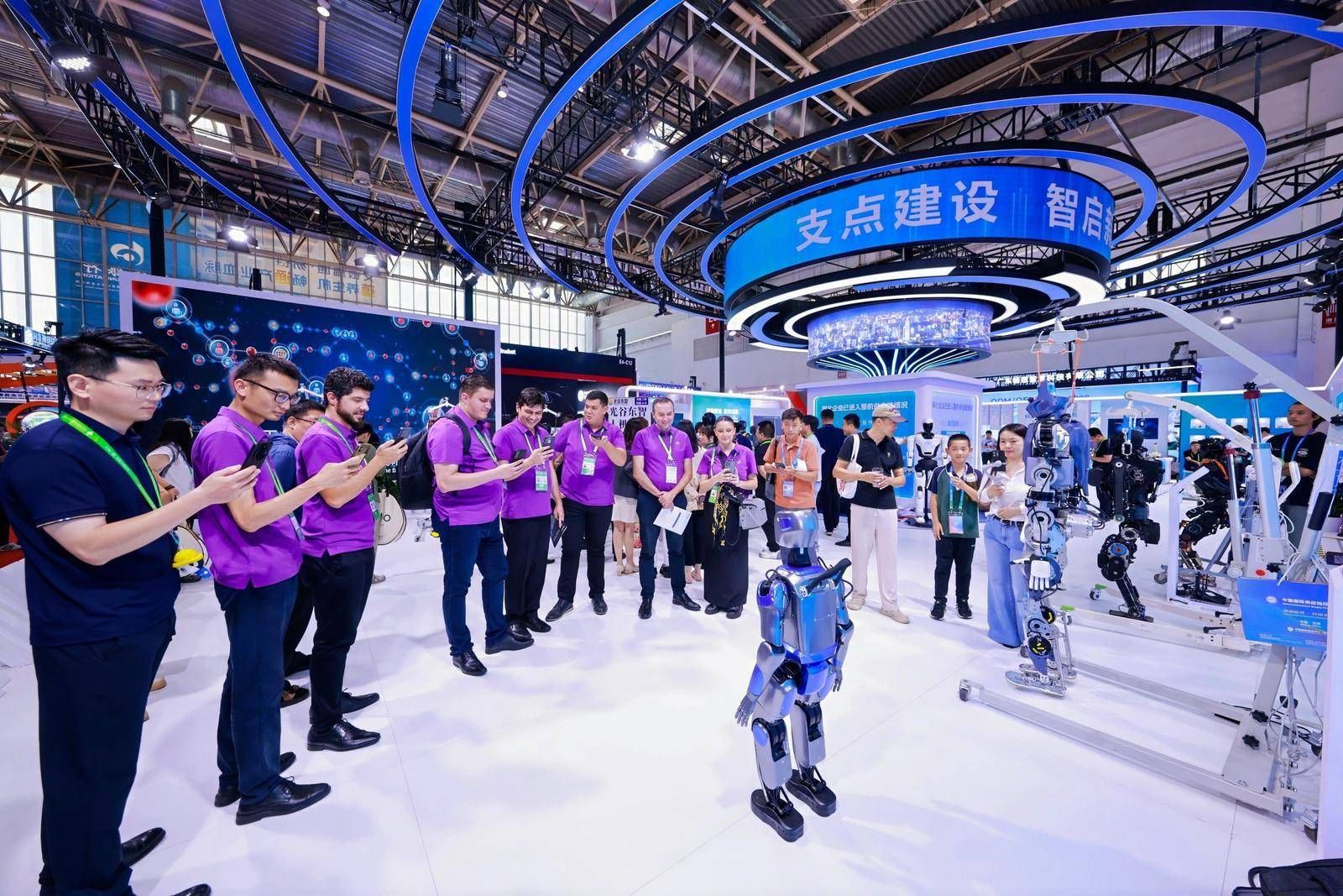 第三届链博会上,湖北人形机器人产业链专题展区,观众组团参观。(省贸促会供图)