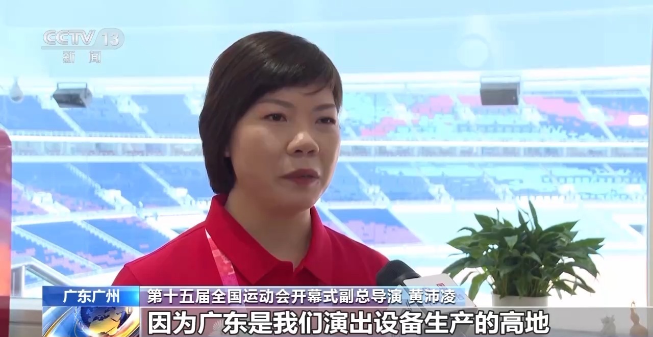 第十五届全国运动会开幕式副总导演 黄沛凌:粤港澳文化一脉相承,同声同气,除了有好的音乐以外,我们也必须要有好的场景,因为广东是我们演出设备生产的高地,我们会调度最好的音响、灯光设备,在现场营造一个最好的场景,所以我们在现场也专门去营造了一个360度全景声的声场效果,希望让我们现场8万观众可以欣赏到整个现场最好的场景。