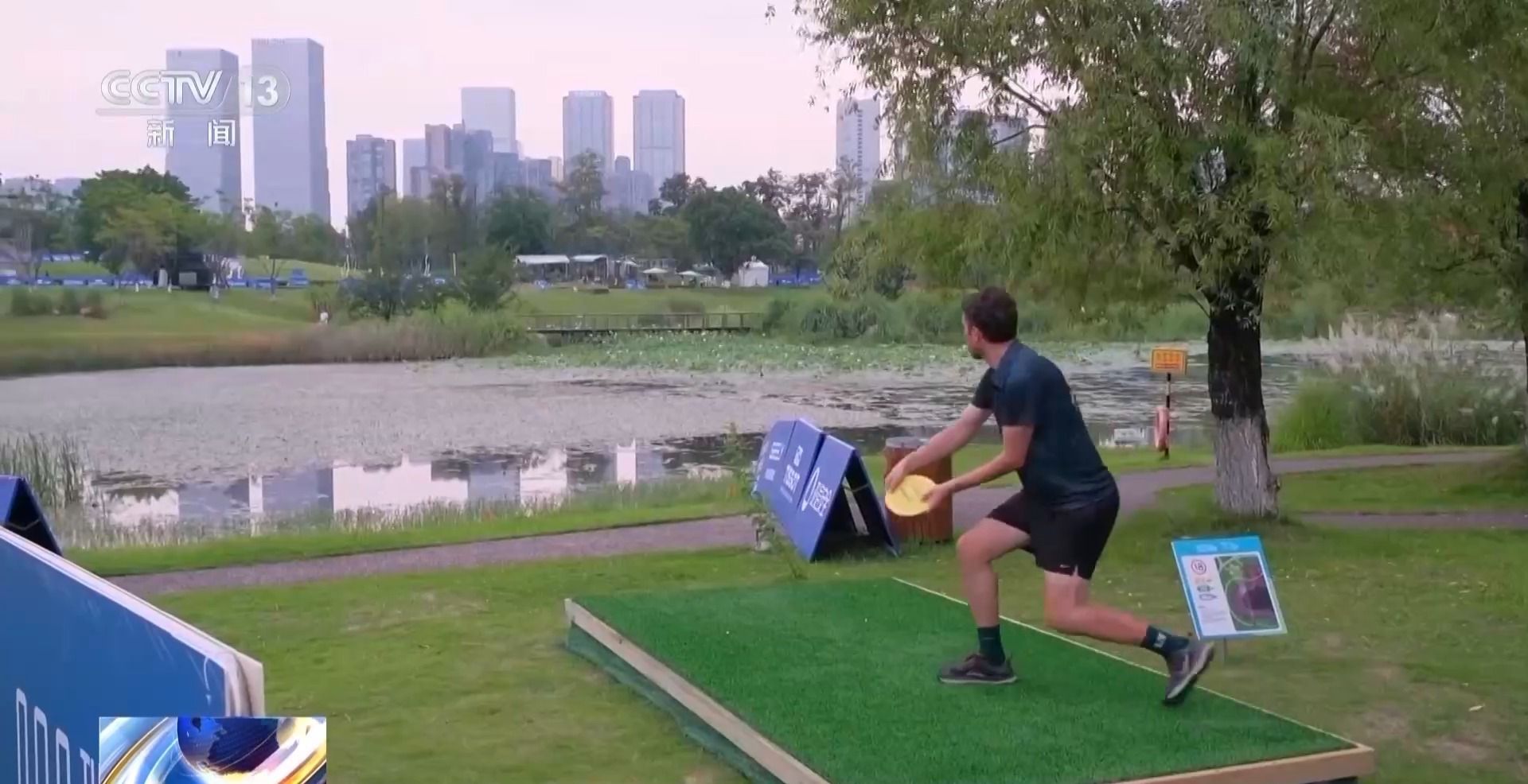 在掷准飞盘项目的赛场,组委会设置跟随式观赛方式,观众可以跟随运动员的推进路线,近距离观赏飞盘在蓝天和绿地间飞行的乐趣。
