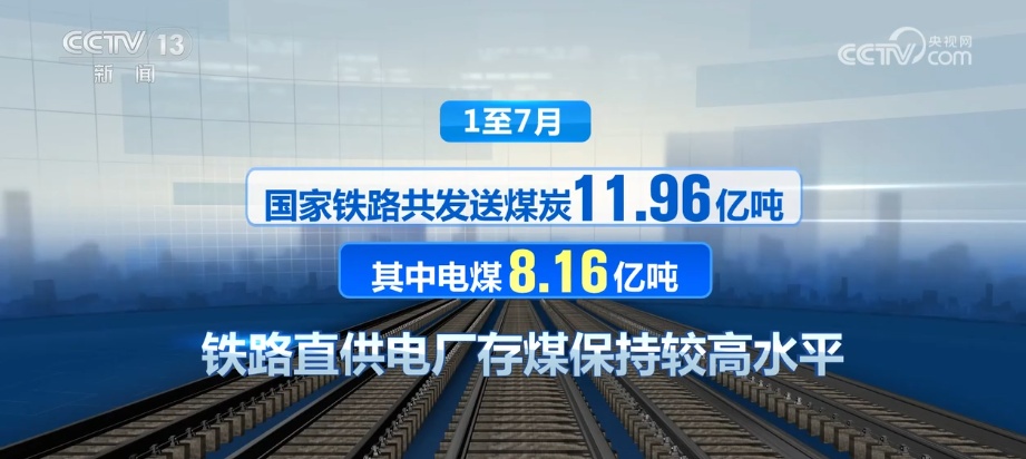 1至7月,国家铁路共发送煤炭11.96亿吨,其中,电煤8.16亿吨,铁路直供电厂存煤保持较高水平。矿建材料、冶炼物资、粮食运量同比分别增长13.6%、8.2%、12.7%。