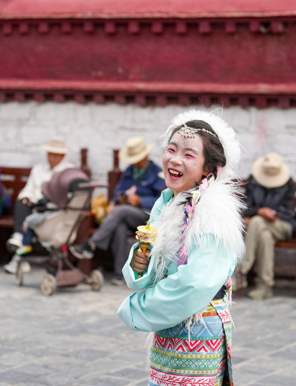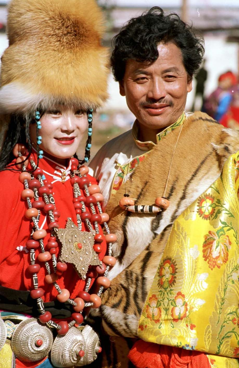 来自天南海北的游客身着华丽的藏装