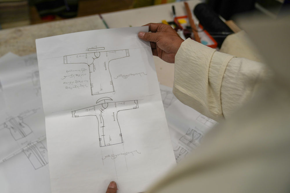 这是洛桑麦朗手绘的藏装制作要领(8月15日摄)。新华社记者 晋美多吉 摄