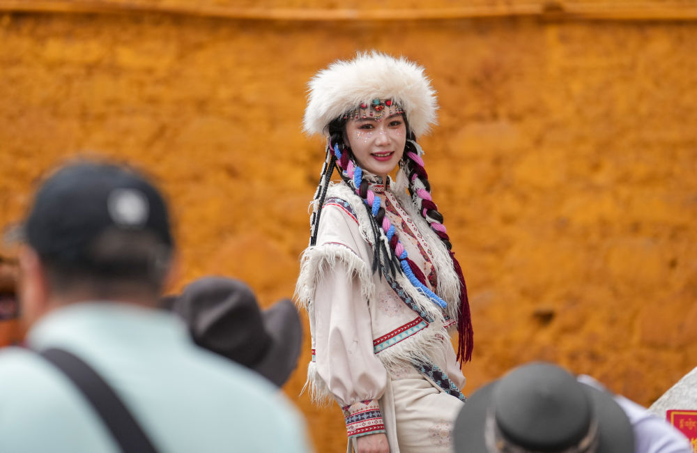 8月19日,一名游客在拉萨老城区身着藏装旅拍。新华社记者 晋美多吉 摄