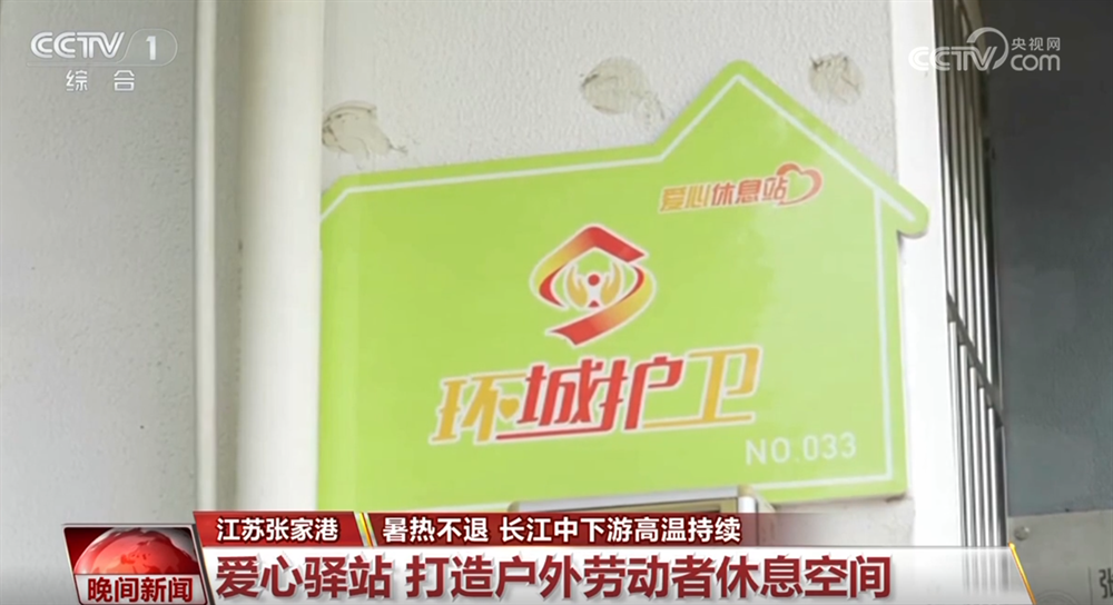 为应对高温天气,江苏张家港城管部门开设“环城护卫”爱心休息驿站,供户外工作人员纳凉休息。
