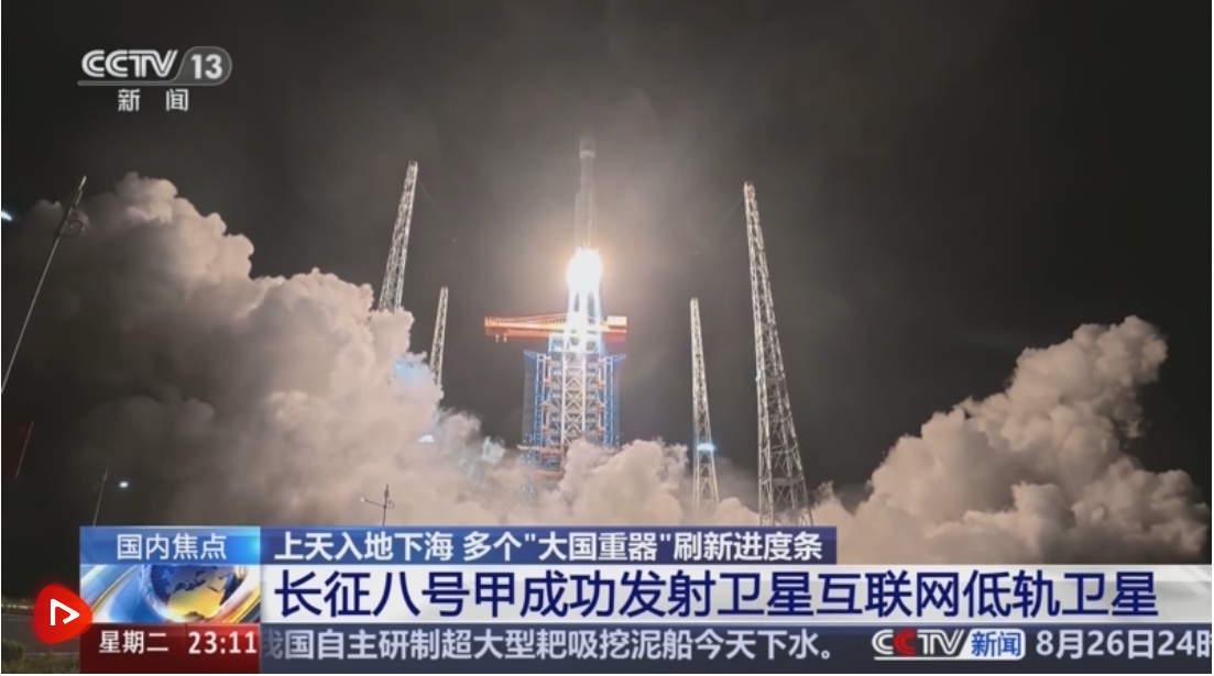北京时间8月26日凌晨3时08分,我国在海南商业航天发射场,使用长征八号甲运载火箭,成功将卫星互联网低轨10组卫星发射升空,卫星顺利进入预定轨道。