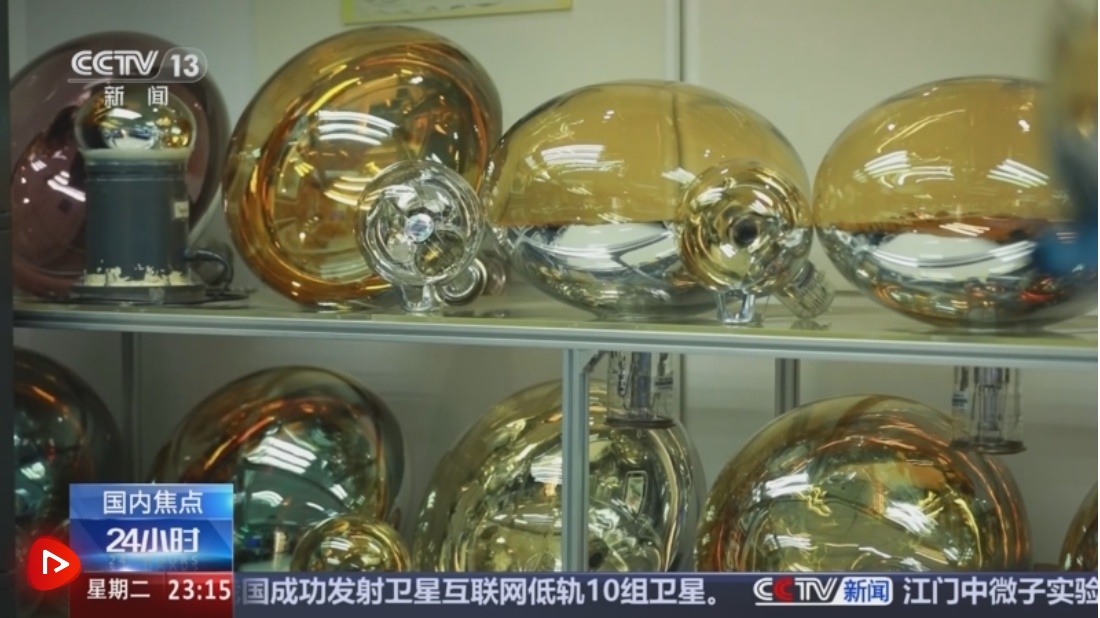 更硬核的技术,藏在玻璃内部这一层金灿灿的金属薄膜里。它相当于黄金瞳的视网膜,荧光会在金属膜上转化为电子,有了它黄金瞳才能真正捕捉中微子的踪迹。别小瞧这层厚度只有几十纳米的金属薄膜,当年它可是国外严密封锁的核心技术。中国科学家只能自己摸索,将金属加热到高温,让它们变成蒸汽,像洗澡时的水雾一样,凝结到玻璃内壁上,通过千万次的试验,才终于成功打破这一垄断。在江门中微子实验里,这样的大大小小的光电倍增管一共有4.5万个,这项关键核心技术的突破,节省成本几亿元。