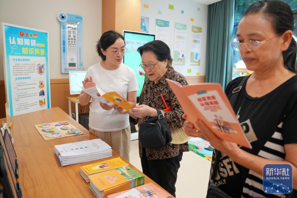 9月1日,几位老人在成都市营门口街道综合为老服务中心的认知关爱中心咨询认知健康问题。