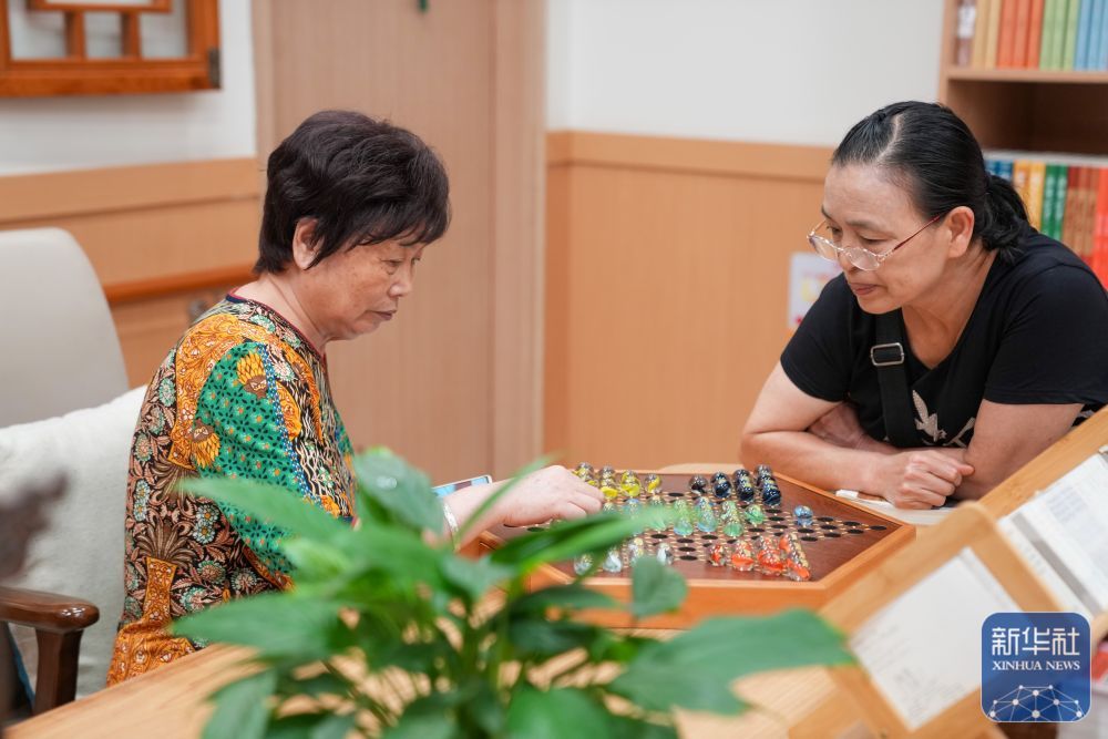 9月1日,两位老人在成都市营门口街道综合为老服务中心的阅览室下棋。