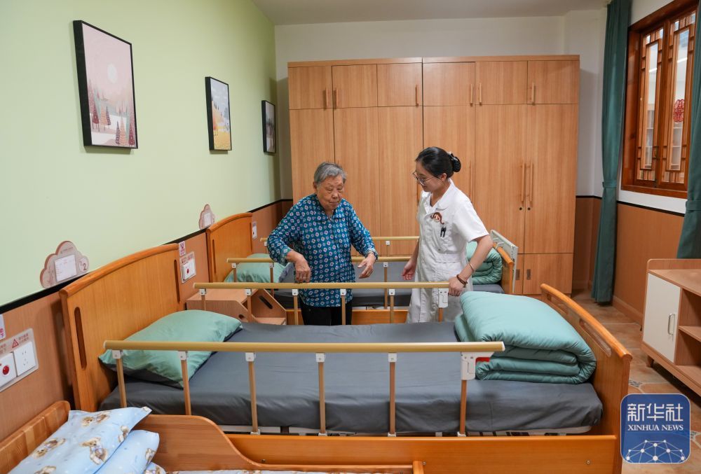 9月1日,成都市营门口街道综合为老服务中心的一位工作人员带领老人参观体验白天托养床位。