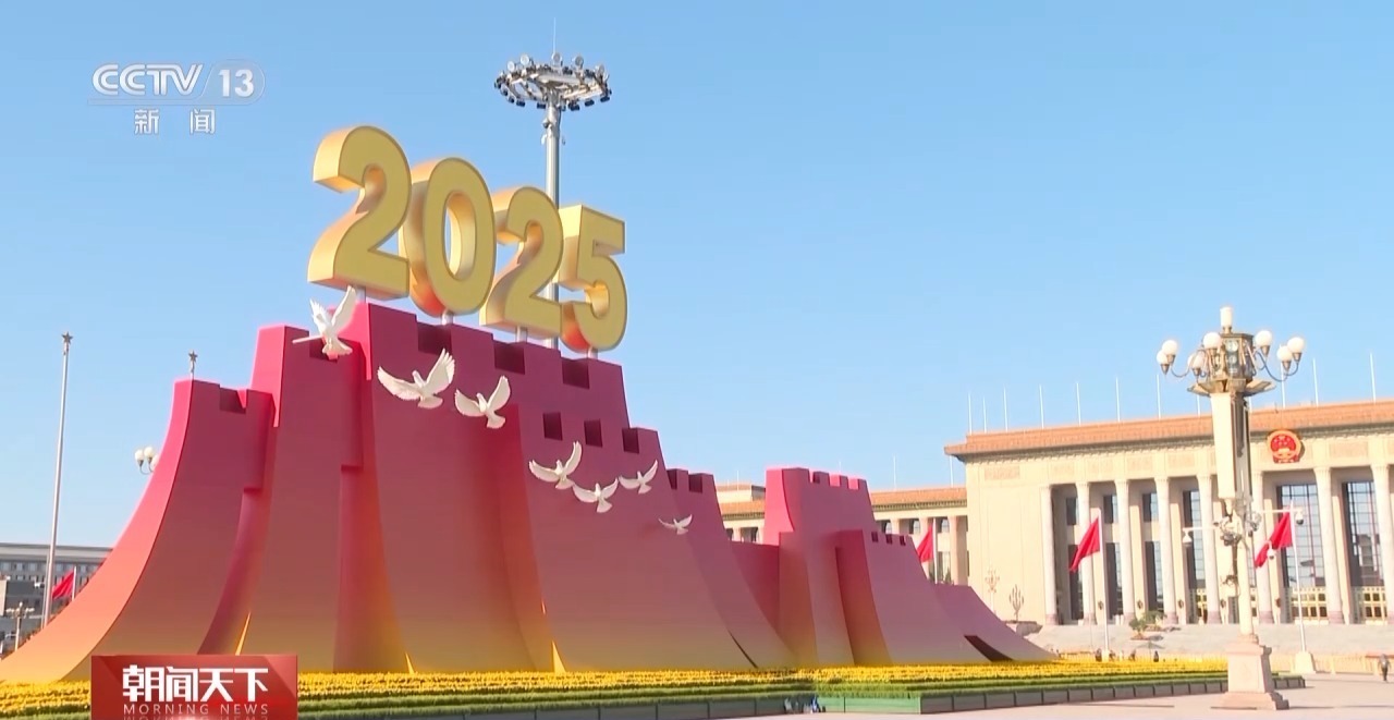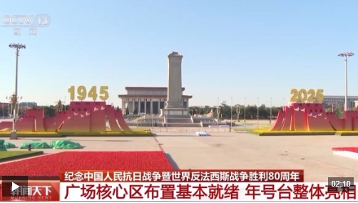 纪念大会服务保障和广场活动指挥部策划设计部部长 田忠利:整个广场布局上来说,我们把年号台矗立在人民英雄纪念碑前面的两侧,托举起1945、2025年号。很好地阐释了“众志成城”纪念大会的主题。