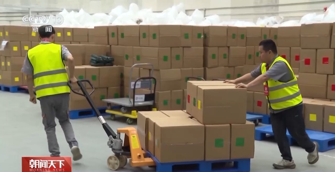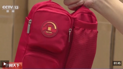 总台记者 王胜东:在观礼人员服务包的存储仓库,这些服务包已经被装载完毕,静待发车。先来了解一下服务包的外部设计特点和使用功能。它上面有一个小口袋,可以装风油精和纸巾,下面还有一个小口袋,可以装背包袋,旁边的网兜,可以装水瓶或者水壶。它能够基本满足广场上观礼群众当天的保障需求,而这三个小口袋就构成了“80”字样,契合今年抗战胜利80周年的主题。服务包一共划分为三个颜色,分别是城墙红、丰饶金和橄榄绿,它们与广场上座椅的颜色是一一对应的,也就是说您在广场上处于不同的观礼位置,就会得到不同颜色的服务包。