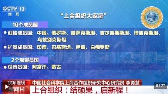 李勇慧:上合大家庭不断扩员,能够得到其他国家的认可,也是因为所有的国家无论大小都能够在上合的平台上找到自己利益的诉求,能进一步求同存异,增加团结,增加互信,给地区带来和平稳定和发展。
