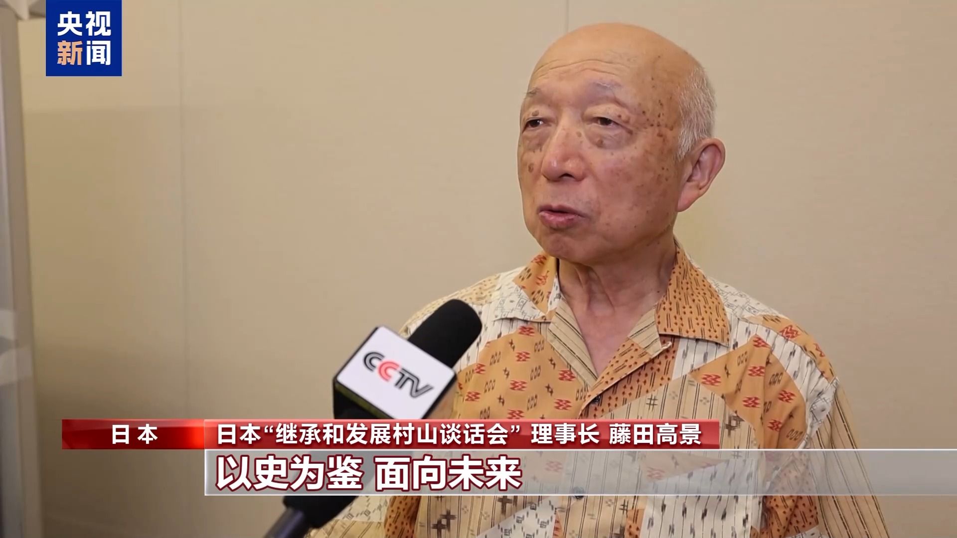 日本“继承和发展村山谈话会”理事长 藤田高景:日本政府想要隐瞒历史事实的态度,是我们绝不能容忍的。日本战败已经80年,日本对亚洲做过什么,对中国做过什么,是否做出承诺,是否道歉谢罪?现在需要回首历史,以史为鉴,面向未来。