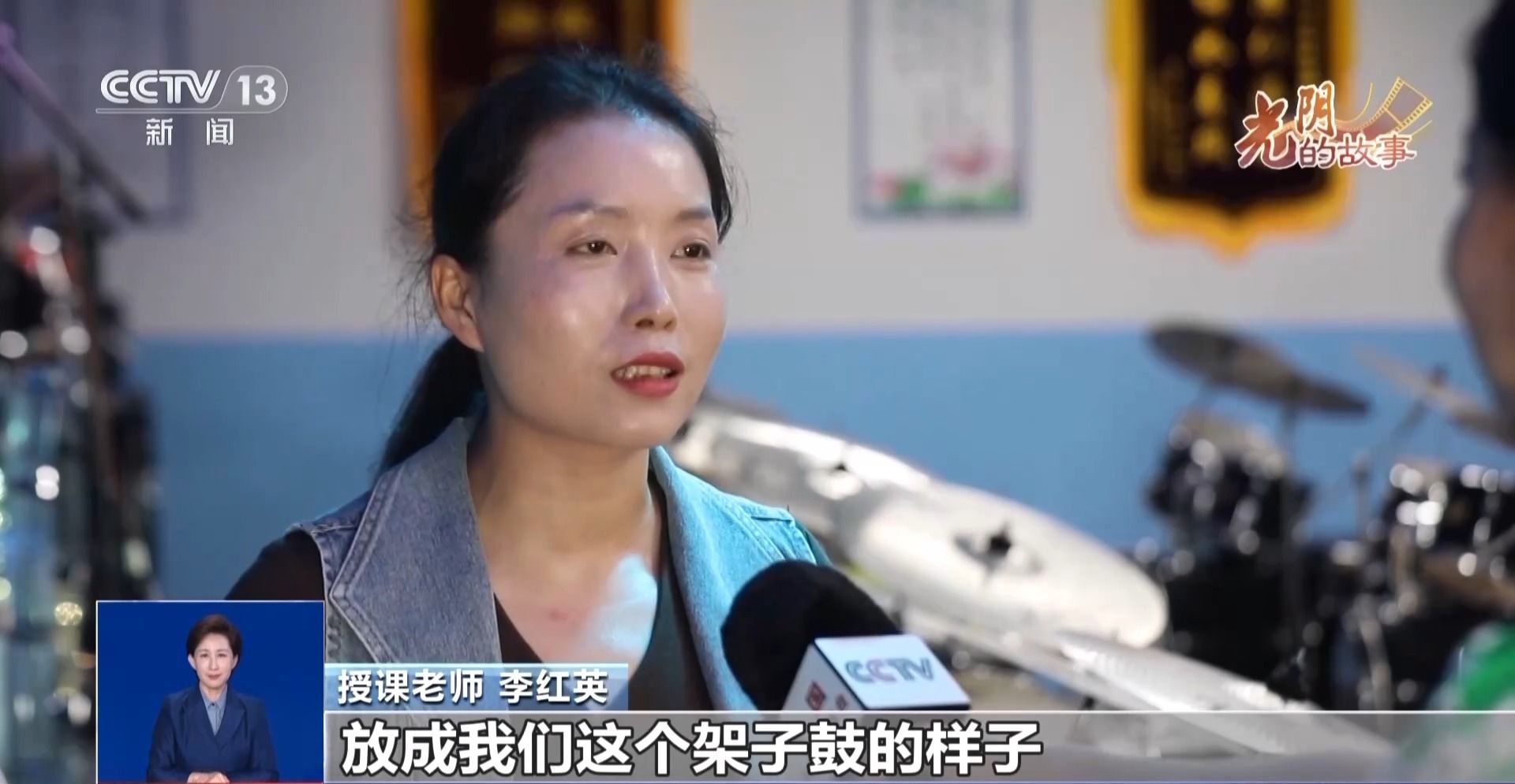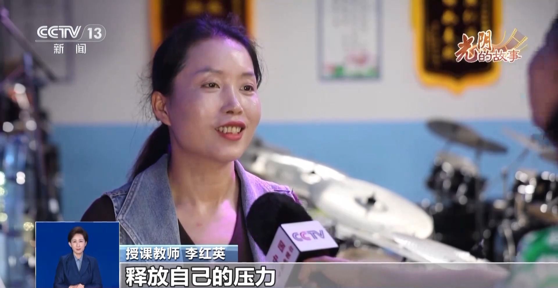 授课老师 李红英:把家里面的抱枕、垫子拿出来,放成架子鼓的样子,她们就自己开始在家里面练习,所以说学得快的学员是跟她们刻苦在家里面练习分不开的。